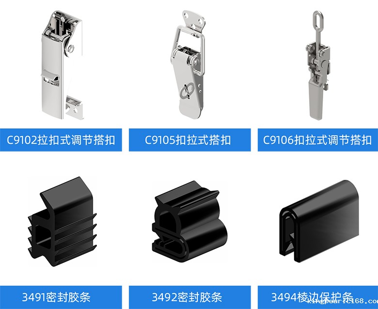 搭扣及密封胶条的产品型号众多,可适用于各种通讯设备的装置需求。
