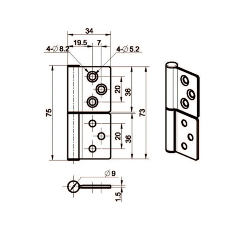 不锈钢内嵌式可拆卸铰链-B2228-16